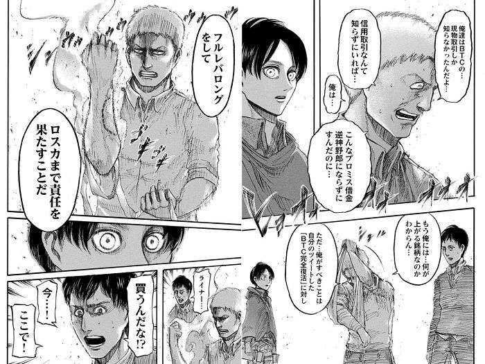 今週の仮想通貨コラ漫画は進撃の巨人です。#不定期連載 #仮想通貨コラ漫画 #アンケートなんてなかったんや pic.twitter.com/nwtDU2va9B